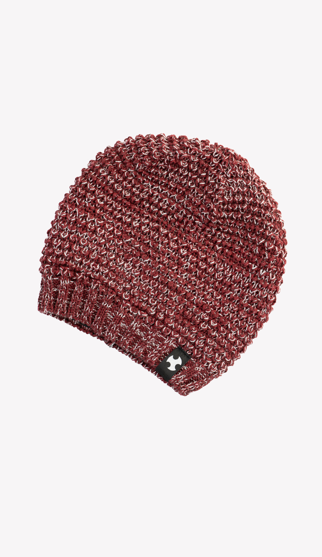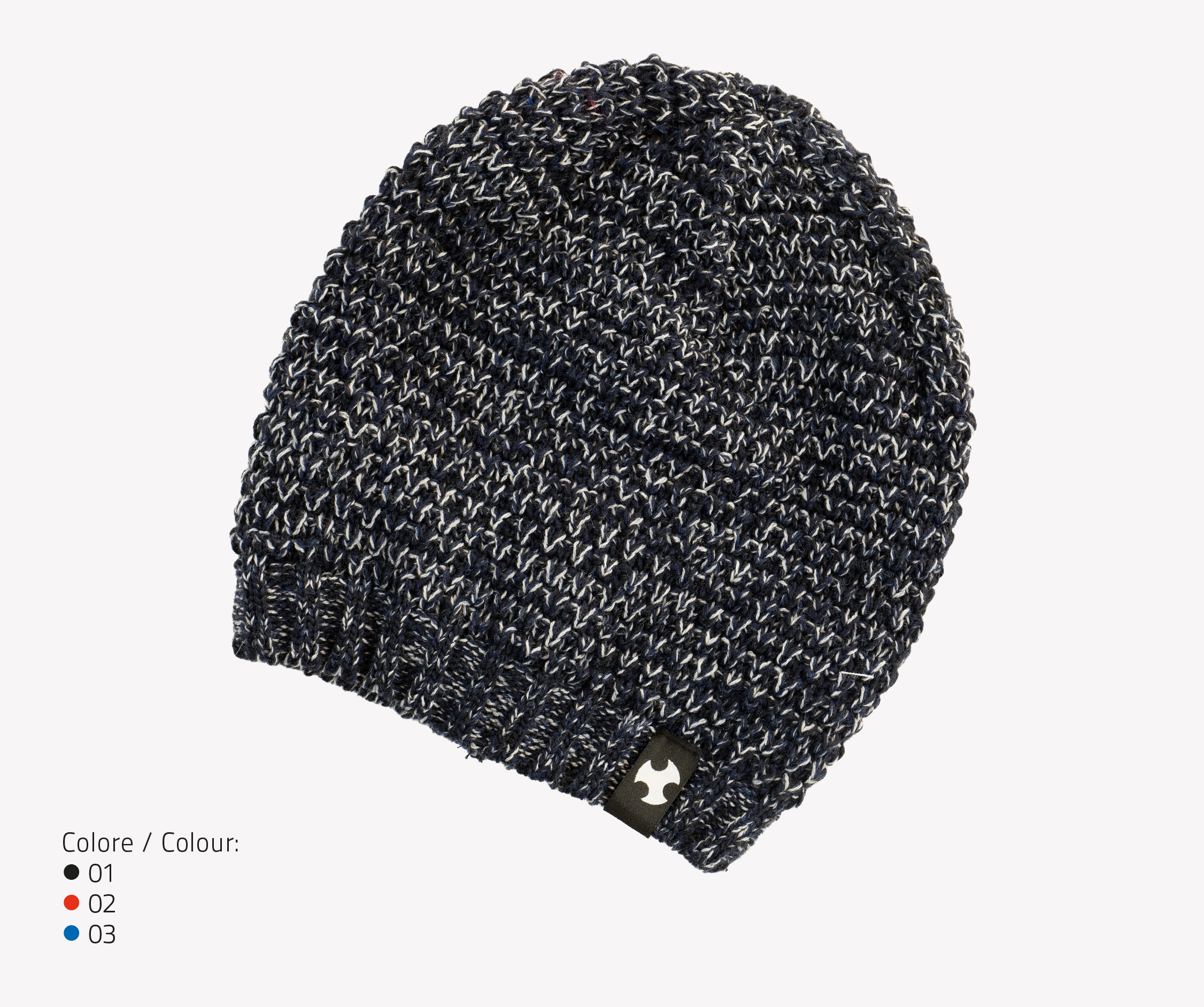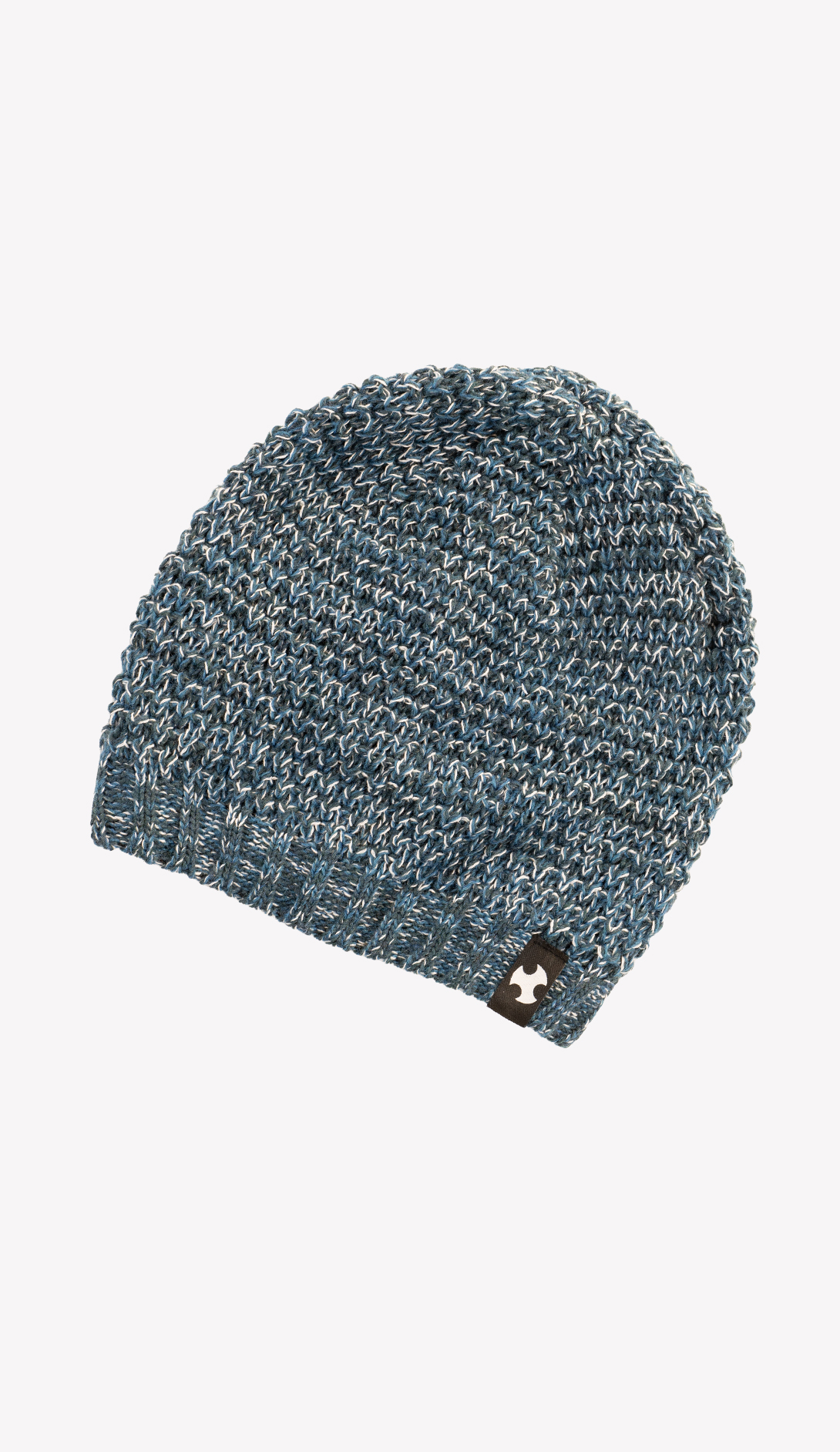 "Moss stitch knit beanie with fleece lining for extra warmth.