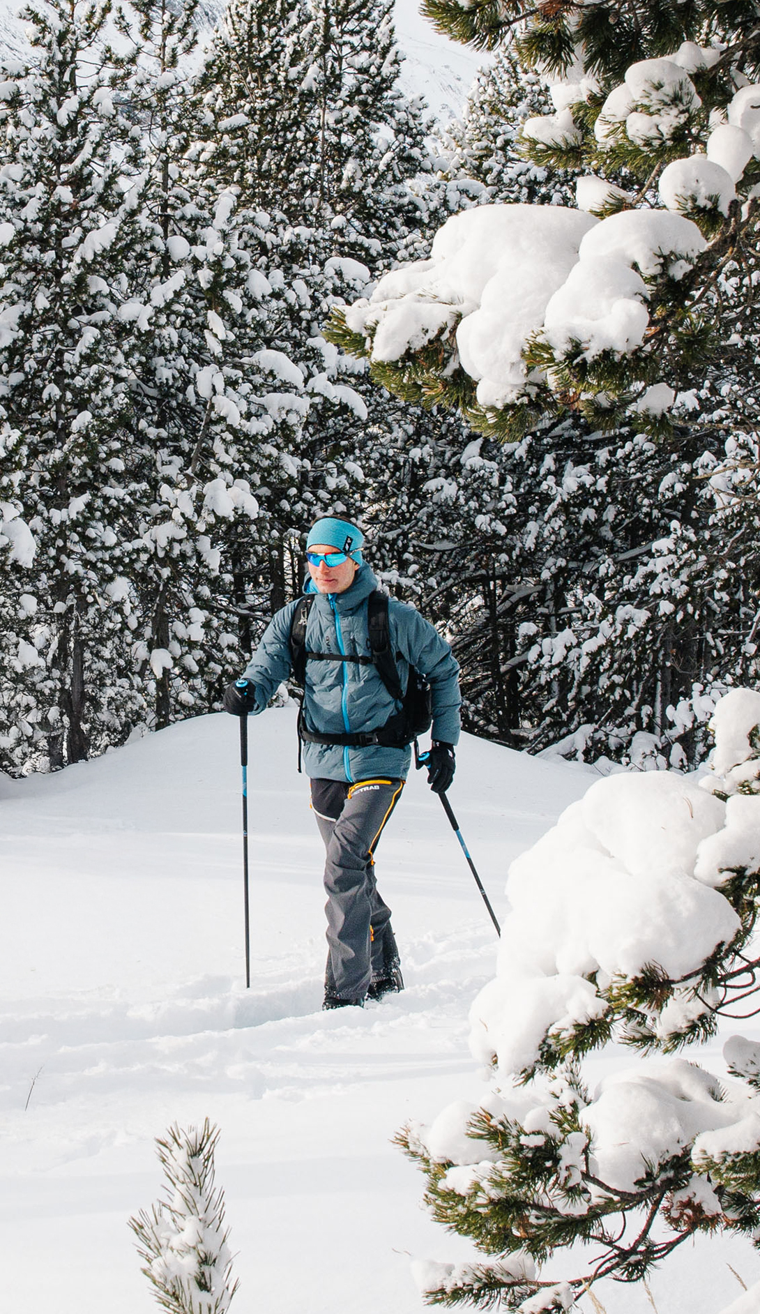 Men's down jacket designed for ski touring as well as any other winter activity, suitable for everyday wear.