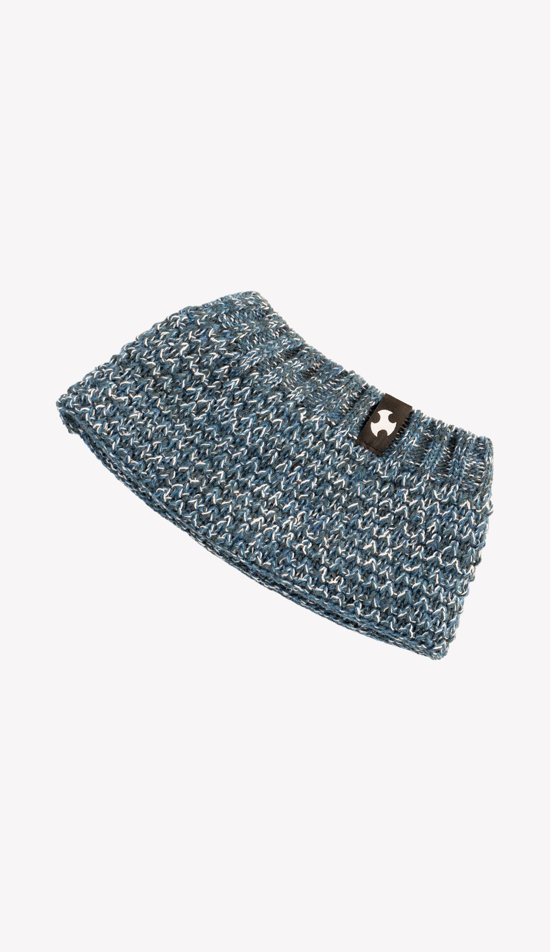 "Moss stitch knit headband with fleece lining for extra warmth.